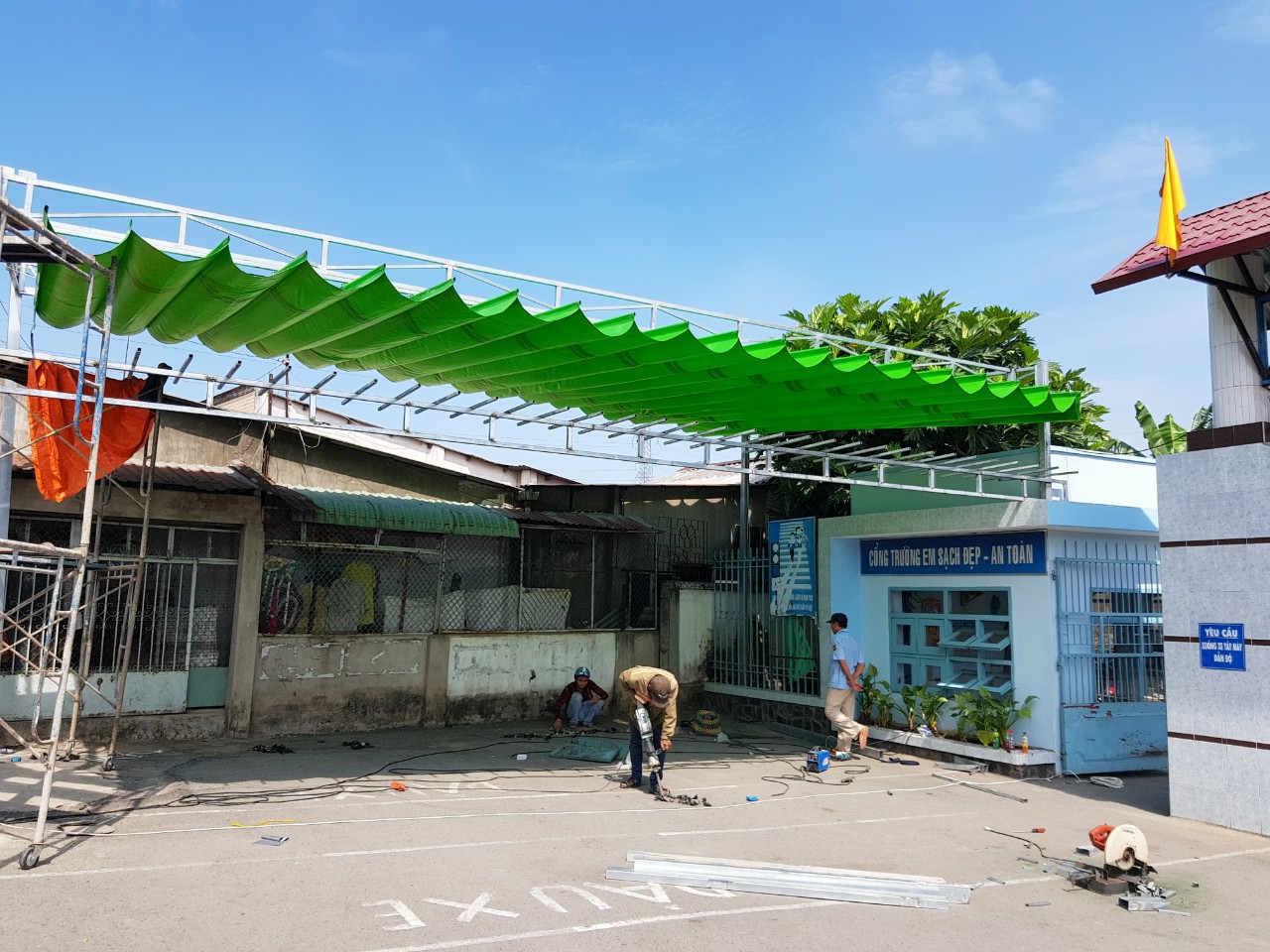 - Lắp đặt mái hiên di động bởi đội ngũ thợ chuyên nghiệp để đảm bảo an toàn và độ bền.
